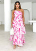 Style One-Shoulder Halter Print Long Swing Dress