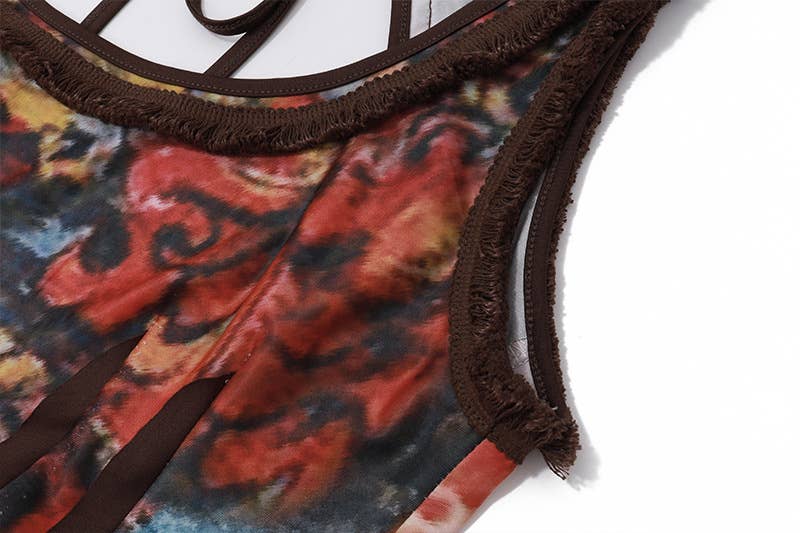 The Stylish And Retro Tie-Dyed Printed U-Neck Dress delivers a polished look while remaining comfortable and functional.