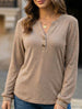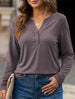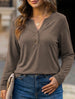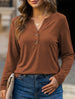 xStylish solid color long-sleeved V-neck button T-shirt