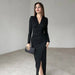 The Stylish V-Neck Slim-Fit High-Waisted Slit Dress delivers a polished look while remaining comfortable and functional.