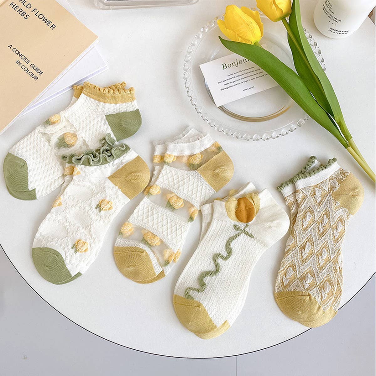 SUMMER GLASS SILK CARTOON FLOWER BOAT SOCKS_CWMS0531