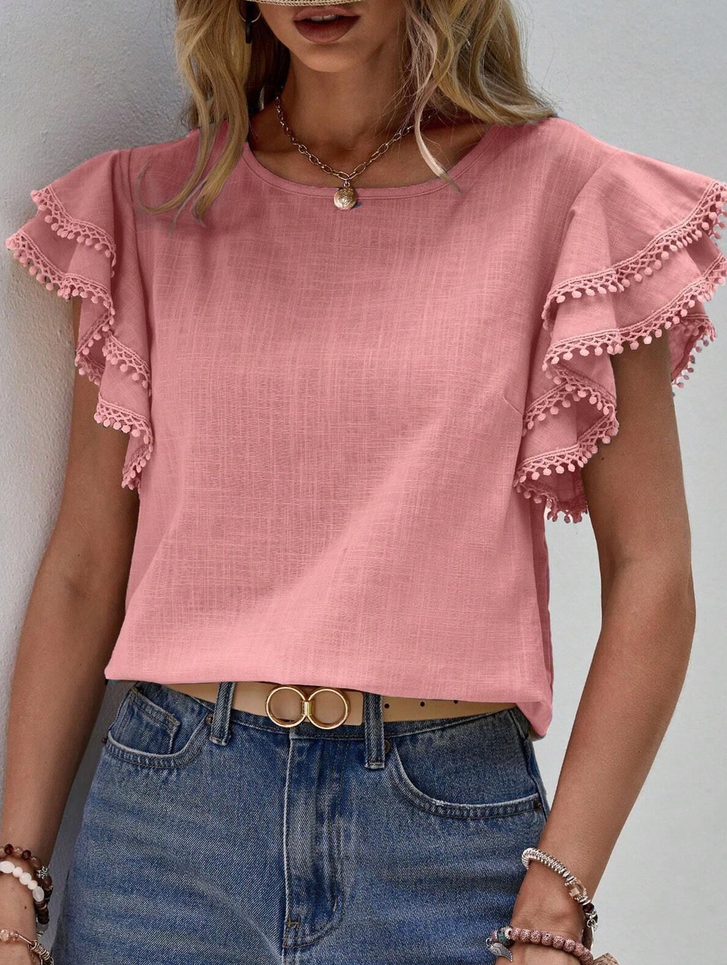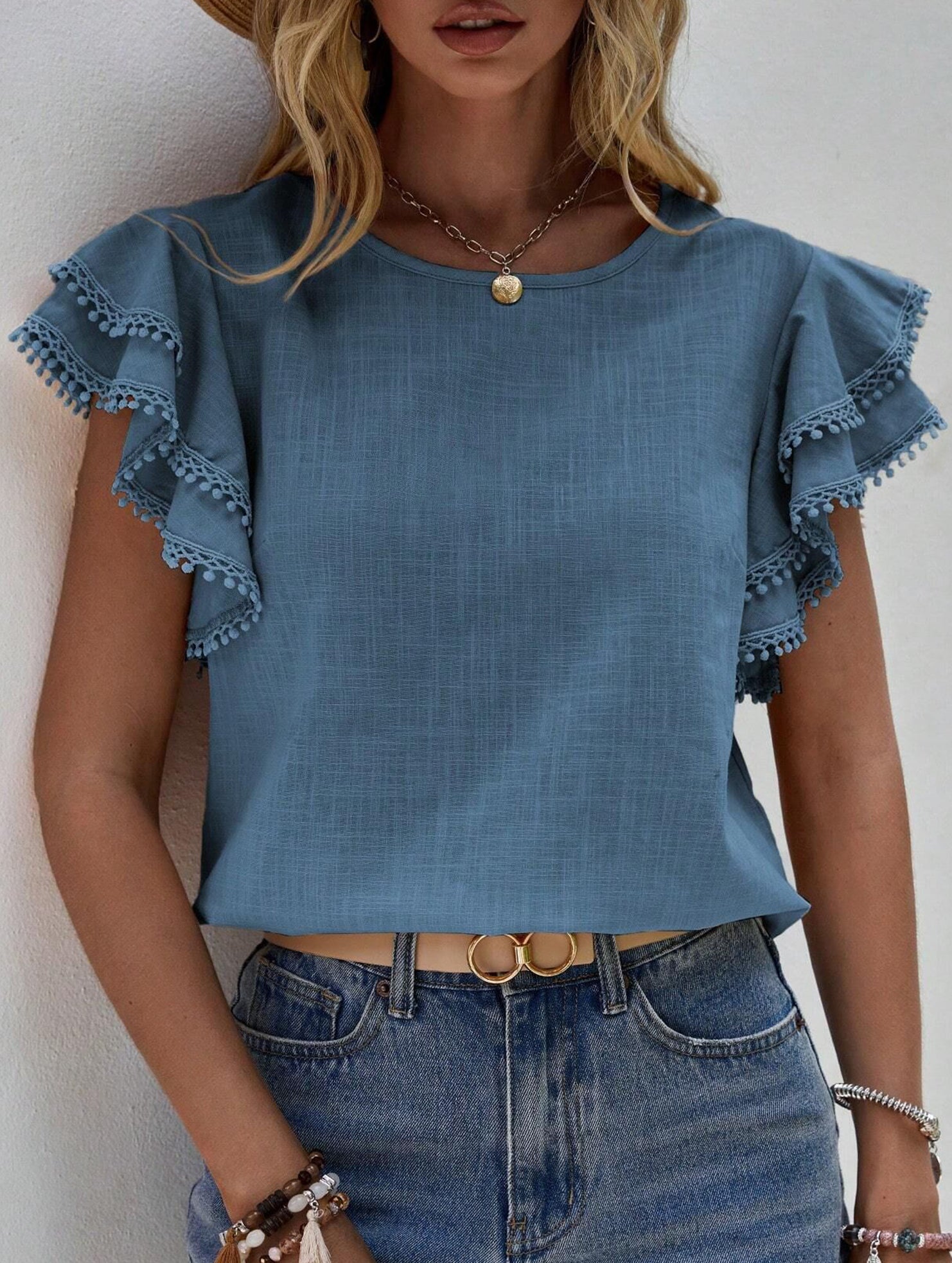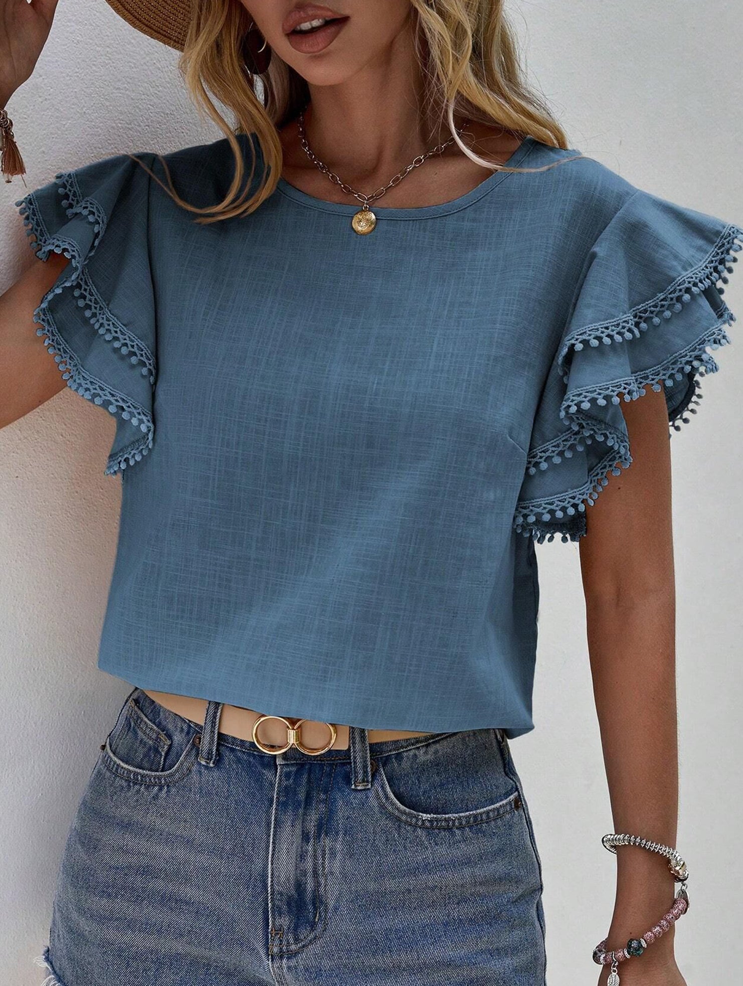 xSweet style Lotus leaf sleeves Round Neck T-shirt