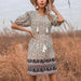 Tailored Floral Dress With Fringe V-Neck Lace-Up