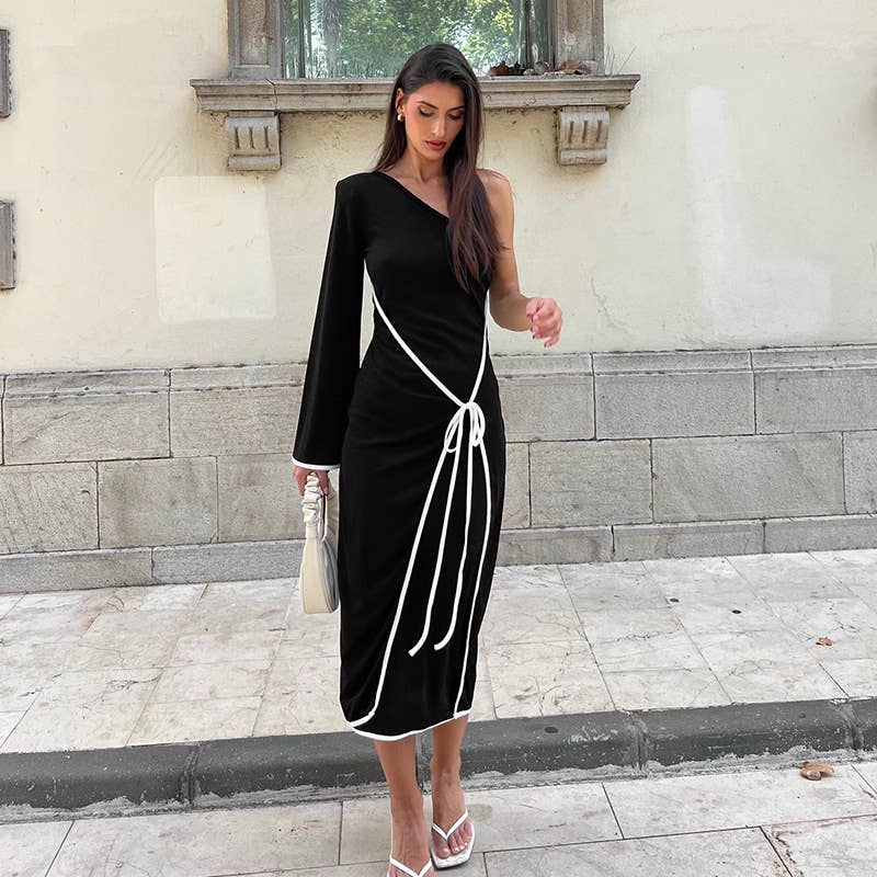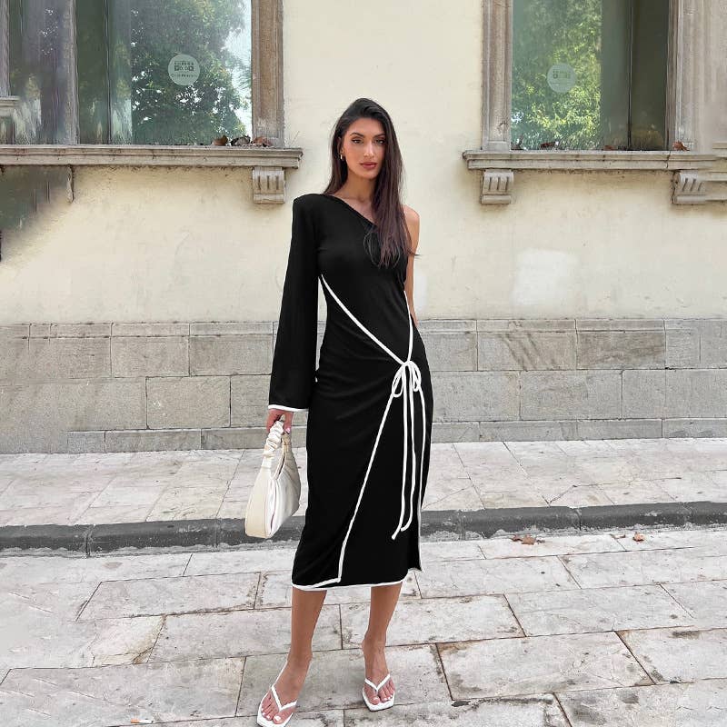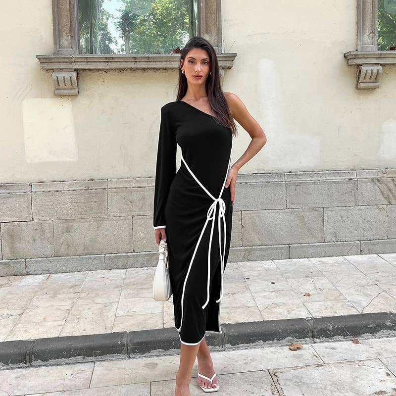 The Temperament One-Shoulder Color Edge Lace Dress delivers a polished look while remaining comfortable and functional.