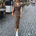 This Temperament Trend Lapel Short-Sleeved Slit Dress balances modern styling with practical comfort for daily wear.