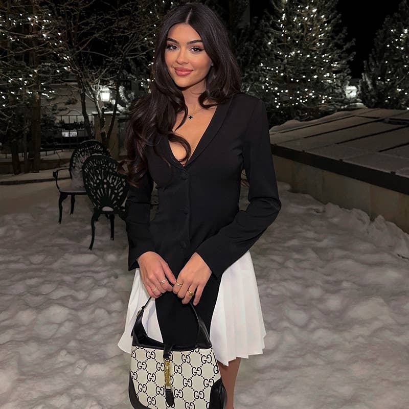 With a clean silhouette and easy wearability, the Thin Color Matching A-Line V-Neck Short Dress fits seamlessly into your rotation.