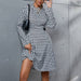 Thousand-Bird Plaid Long-Sleeved Dress