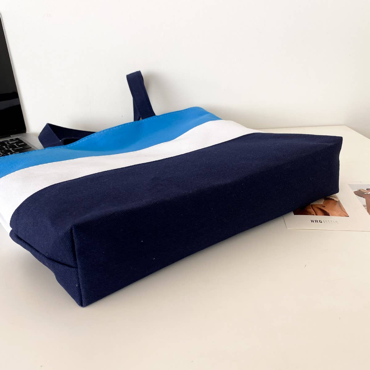 The Three Color Thick Striped Canvas Tote Bag adds a refined touch with its clean and modern silhouette.