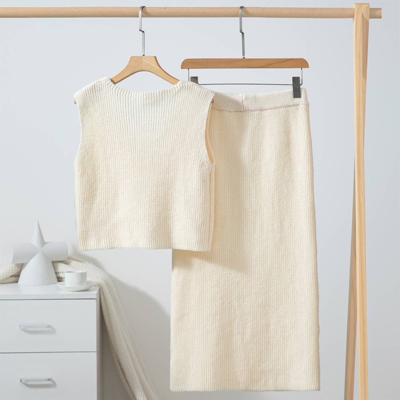 With a clean silhouette and easy wearability, the Three-Dimensional Floral Skirt Vest Knitted Set fits seamlessly into your rotation.