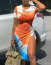 Tie-Dye Printed Crew Neck Slim-Fit Dress