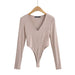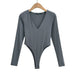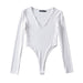 Tight Deep V-Neck Long-Sleeved One-Piece Top