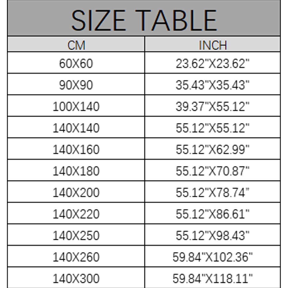 Size: 100X140,140X140,140X160,140X180,140X200,140X220,140X250,140X260,140X300,60X60,90X90