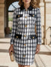 Classic texture, modern contrast. This slim-fit dress features rich tweed plaid patterning with a bold contrast collar that frames the face with unexpected polish. The tailored silhouette hugs curves while the structured fabric maintains its shape—perfect for cocktail events, office parties, or any occasion calling for sophisticated edge. Where heritage texture meets contemporary statement-making detail.