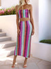 Two-Piece Dopamine Striped Strapless Skirt Set
