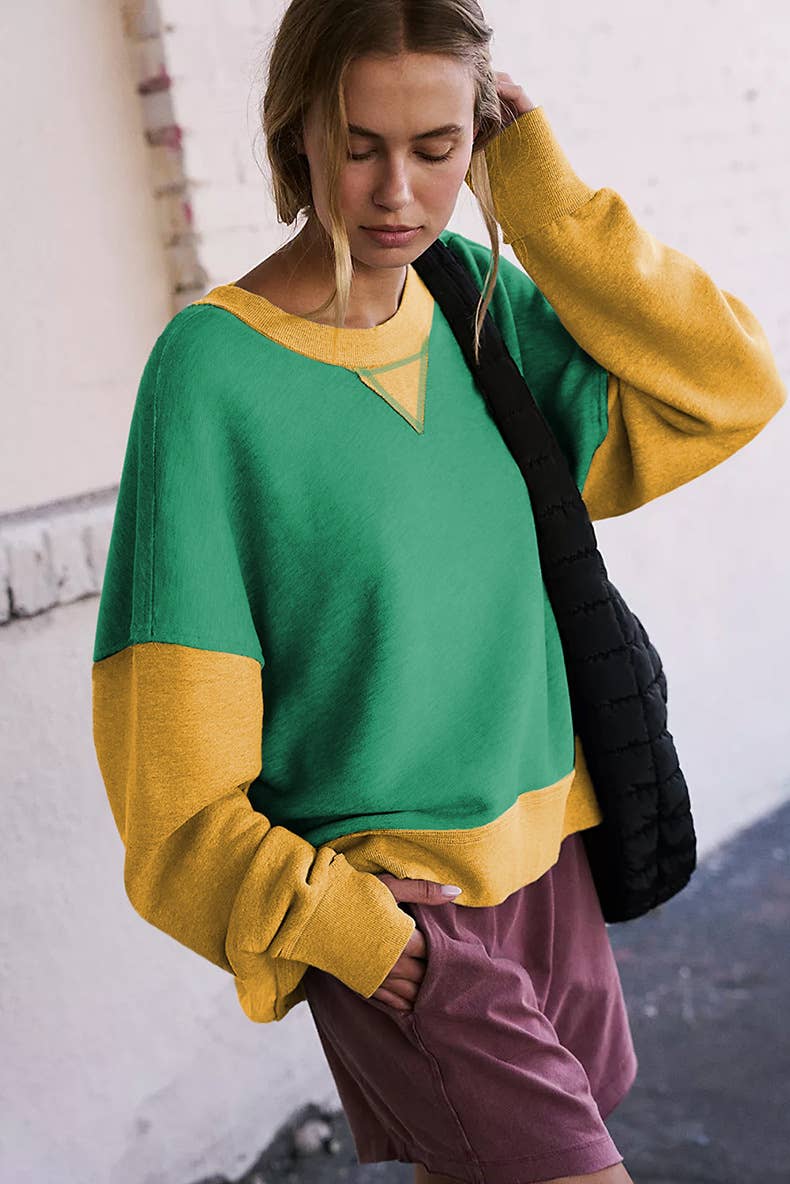 A versatile addition to your wardrobe, the Two-Tone Round-Neck Loose Pullover Hoodie works across multiple occasions.