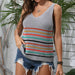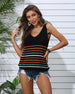 U-Neck Colored Striped Knitted I-Shaped Vest