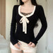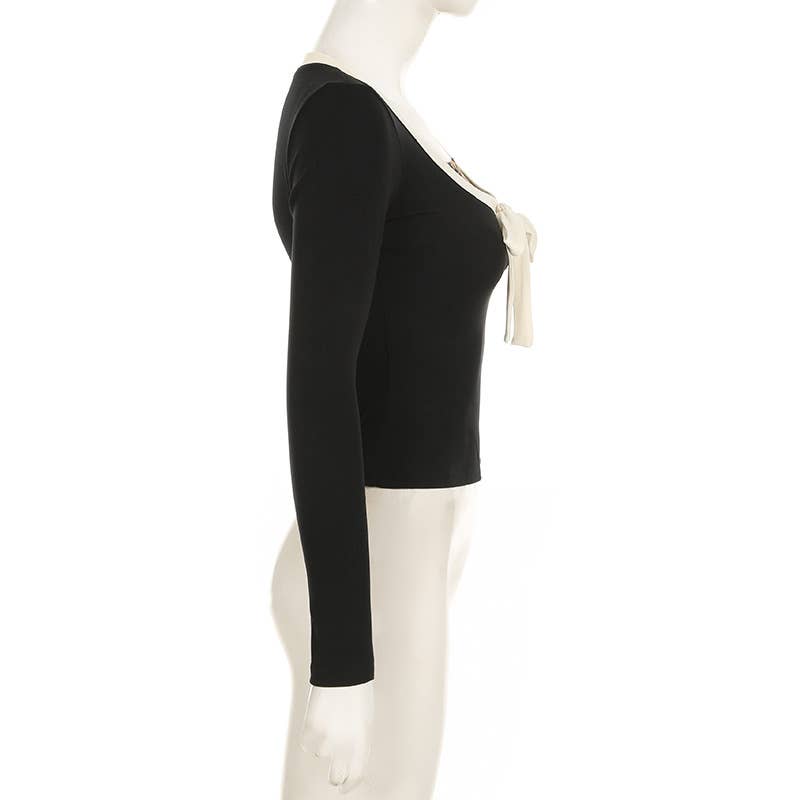 Designed to complement everyday outfits, the U Neck Leopard Print Bow Patchwork Fake Two Tops brings a refined yet wearable feel.