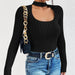 This U-Neck Long Sleeve Pit Striped Wool Knit T-Shirt balances modern styling with practical comfort for daily wear.