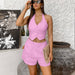 V-Neck Backless Vest & High-Waist Shorts Set