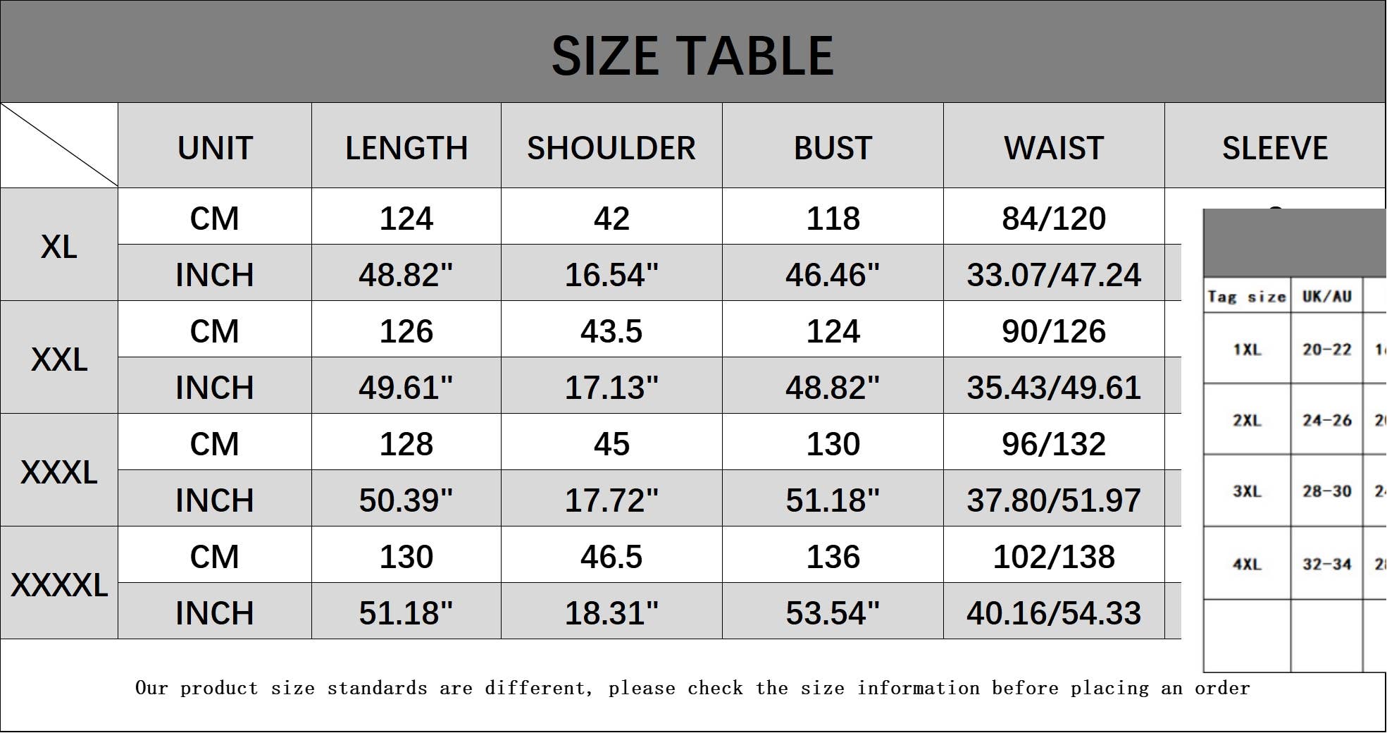 Size: XL,XXL,XXXL,XXXXL