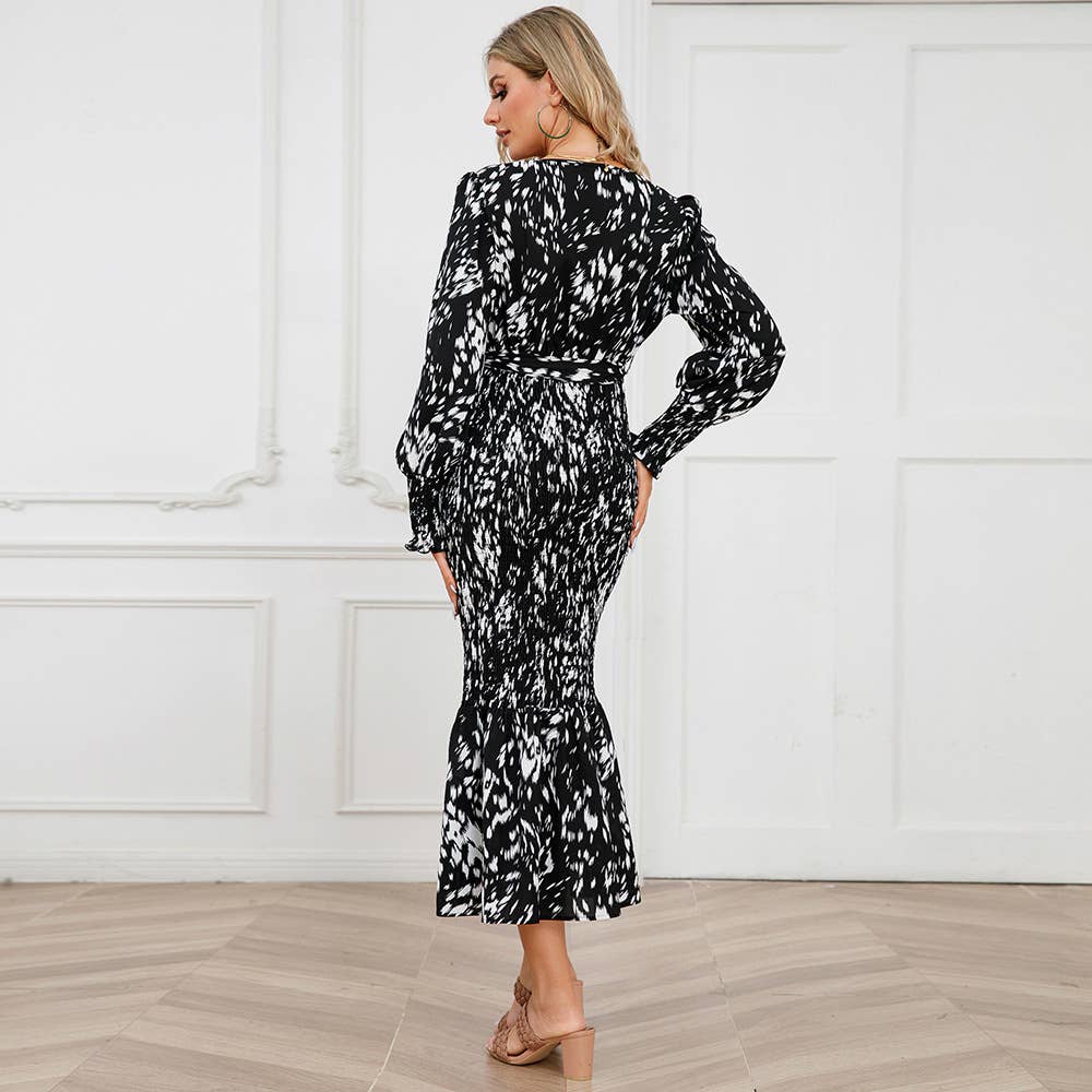 The V-Neck Belted Floral Mermaid Maxi Dress delivers a polished look while remaining comfortable and functional.