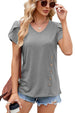 V Neck Button Petals Sleeve Short Sleeve Shirt_Cwtsts0150