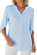 Designed to complement everyday outfits, the V Neck Button Solid Color Casual Chiffon Shirt_Cwtsts0185 brings a refined yet wearable feel.