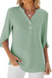 V Neck Button Solid Color Casual Chiffon Shirt_Cwtsts0185