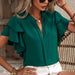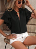The V-Neck Casual Double Layer Lotus Sleeve Blouse delivers a polished look while remaining comfortable and functional.