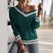 V-Neck Color Contrast Patchwork Pullover Sweater