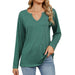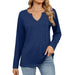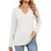 V-Neck Color Cotton Long Sleeve Loose T-Shirt