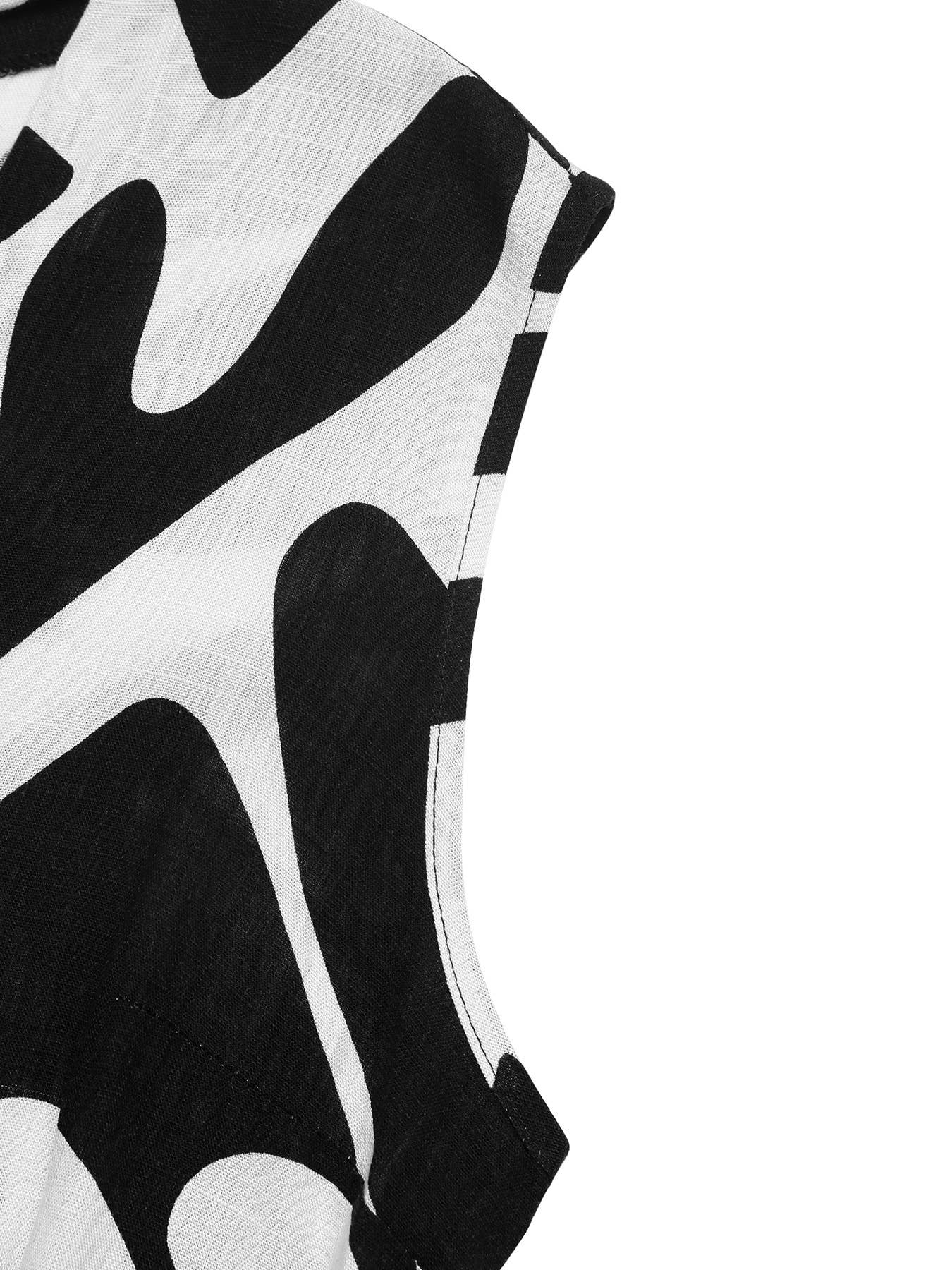 With a clean silhouette and easy wearability, the V-Neck Commuter Sleeveless Printed Jumpsuit fits seamlessly into your rotation.