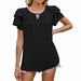 V-Neck Cutout Double-Sleeved Chiffon T-Shirt