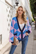 V-Neck Diamond Check Color Knit Cardigan Coat