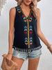 V-Neck Embroidered Stitching Hem Beard Blouse