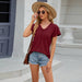 The V-Neck Fly-Sleeved Pleated Short-Sleeved T-Shirt delivers a polished look while remaining comfortable and functional.