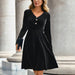 This V Neck Hepburn Style Black Velvet Dress_Cwdsd3228 balances modern styling with practical comfort for daily wear.