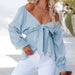 V Neck Lace Up Casual Loose Fitting Shirt_Cwtstl0644