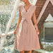 V Neck Lace Up Style Commuter Swing Midi Dress_Cwdsd3256