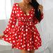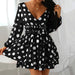 V-Neck Long-Sleeved Polka Dot Fashion Dress