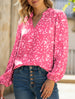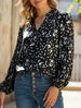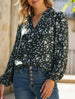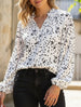 V-neck long-sleeved polka dot print pleated shirt