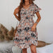 V-Neck Loose Holiday Print Lotus Sleeves Dress