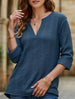 xV-neck mid-sleeve button-up jacquard T-shirt