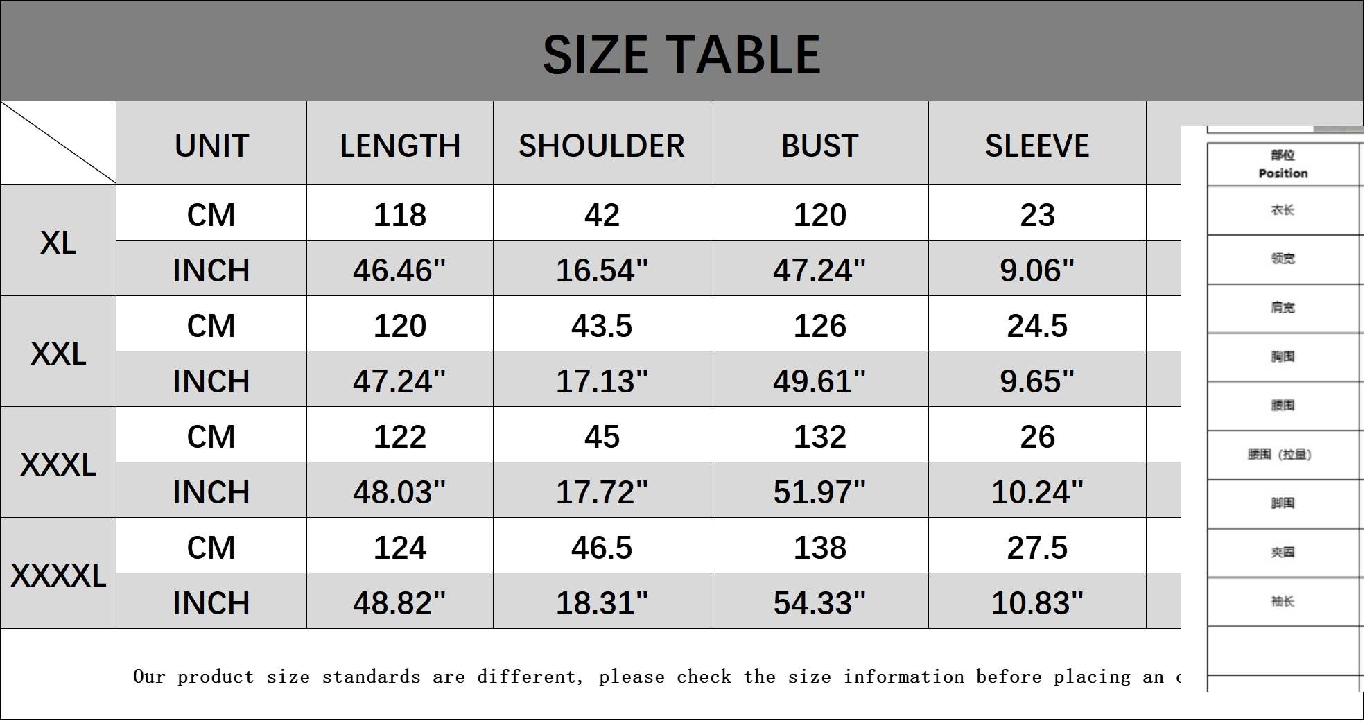 Size: XL,XXL,XXXL,XXXXL