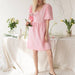 V-Neck Puffed Sleeve Cotton Linen Dress