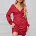V-Neck Sexy Long-Sleeved Solid Color Dress