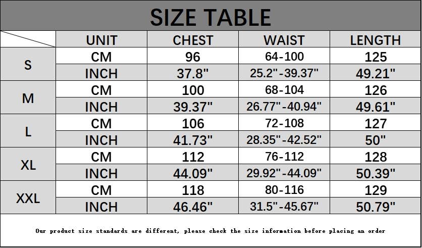 Description & Size Chart