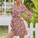 V-Neck Waist Floral Long-Sleeved Short Dress