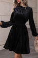 Velvet Long-Sleeved Dress With Waist Tucked