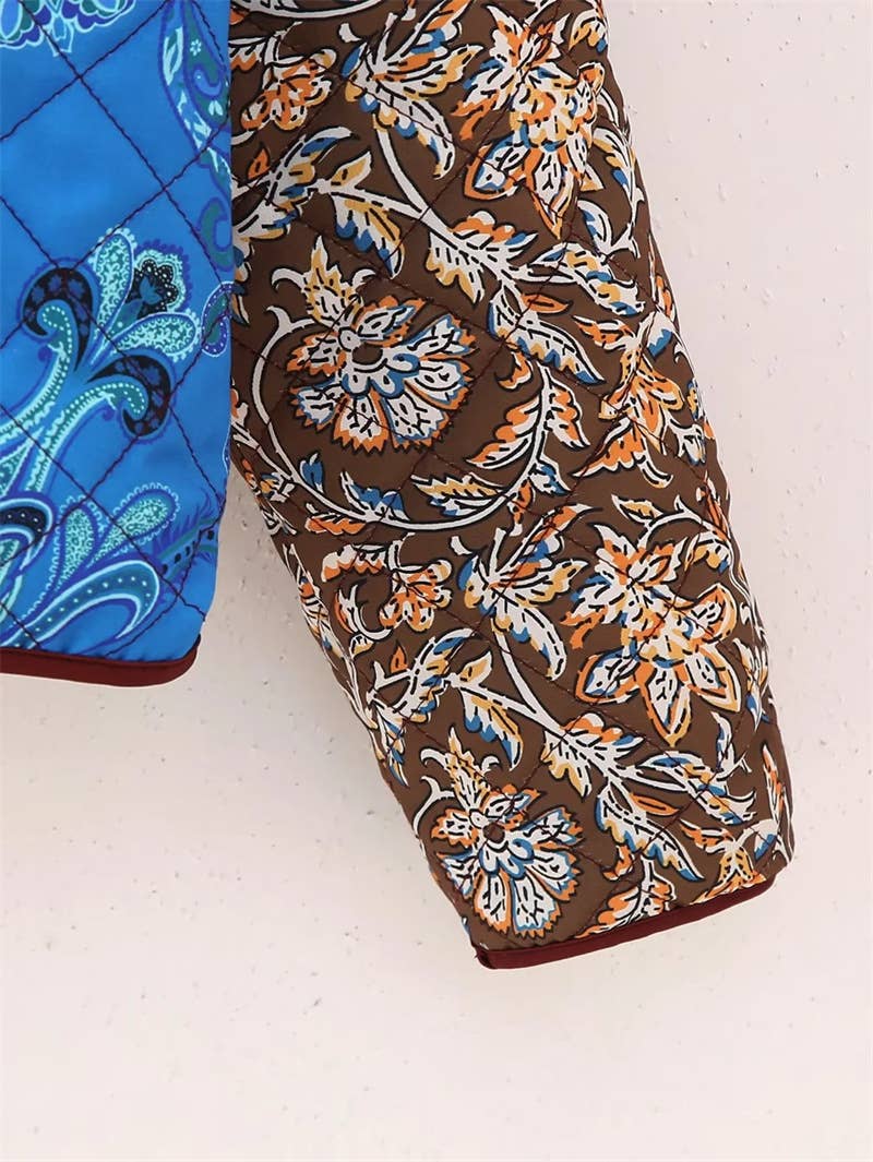 Vintage Art Style Patchwork Collared Cotton Jacket